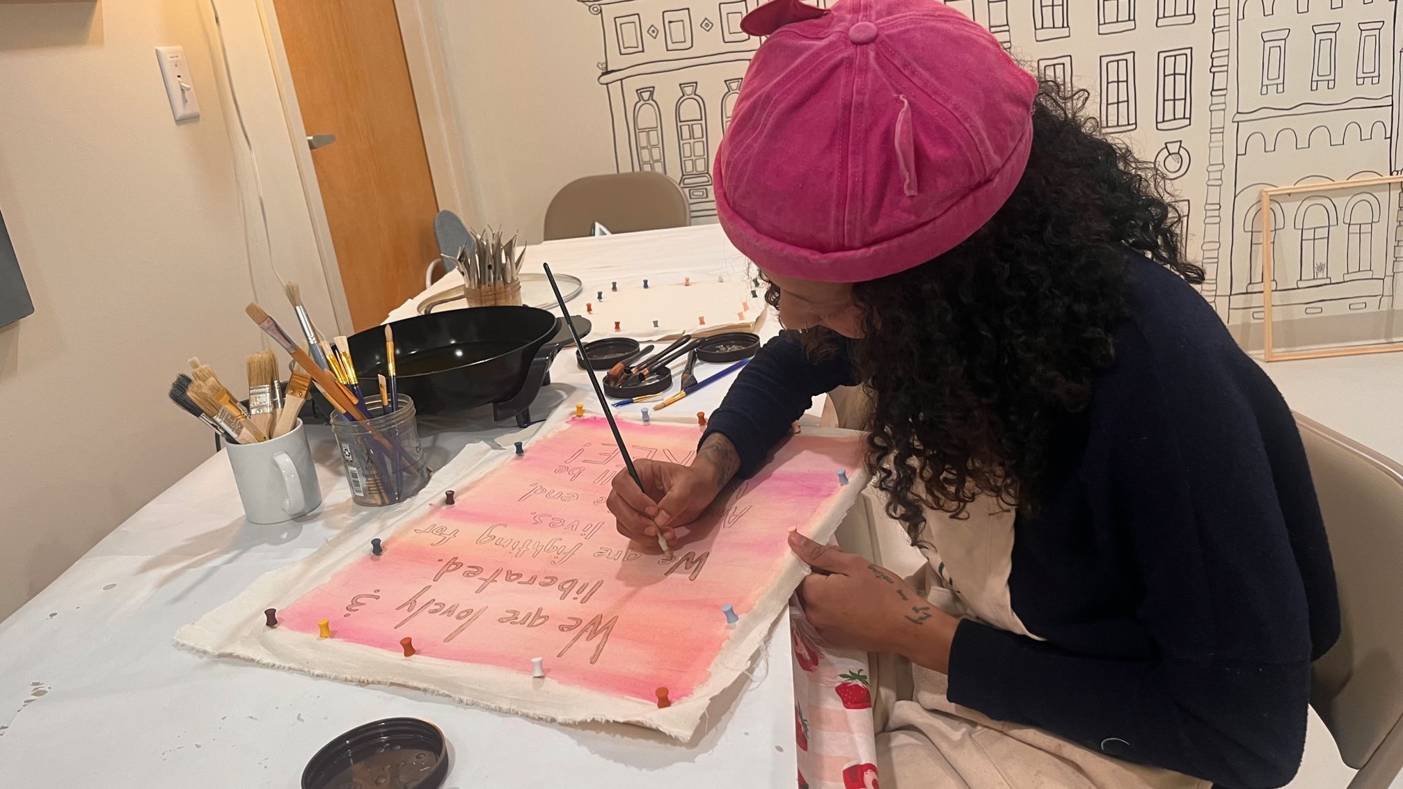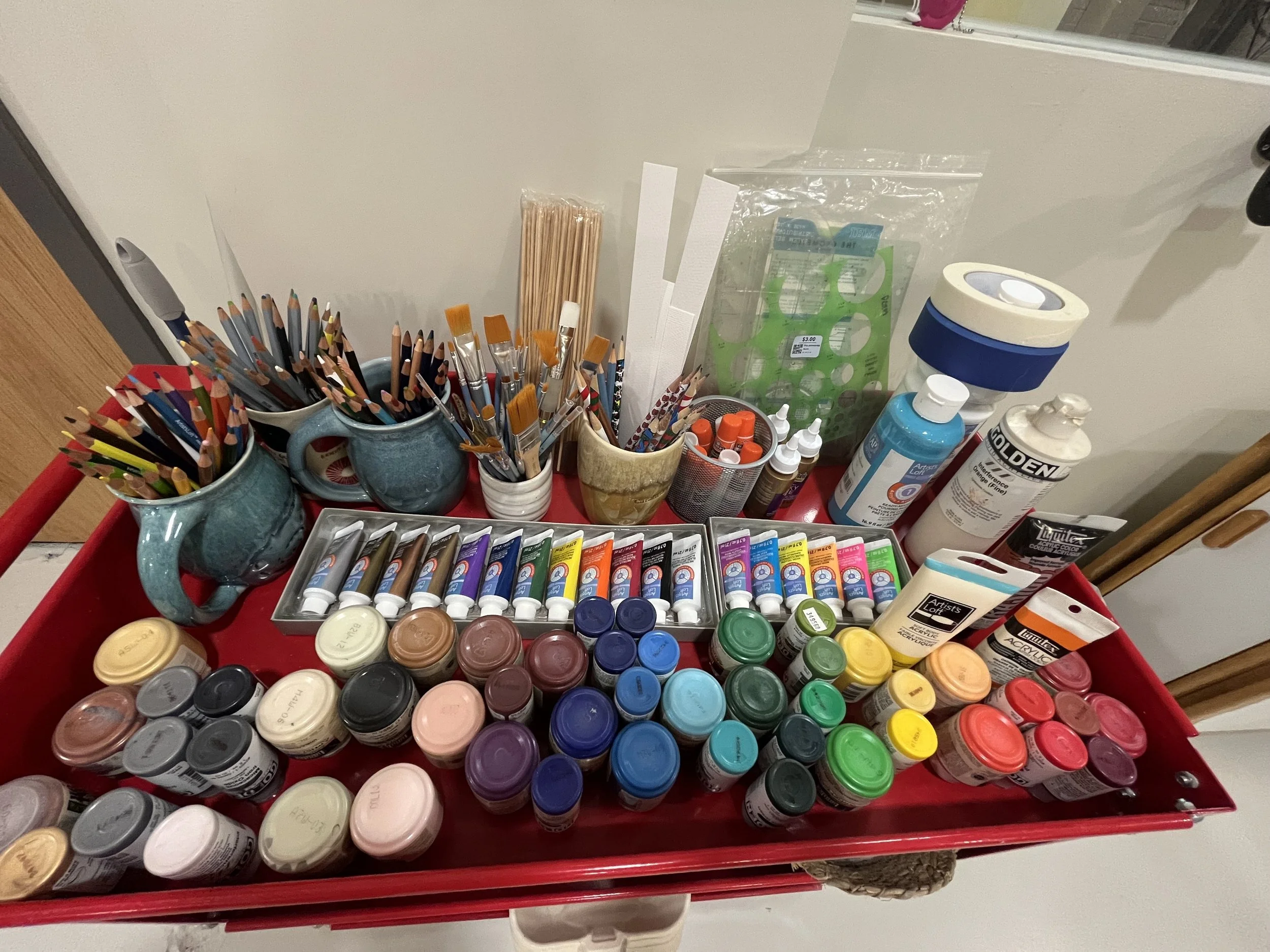 The ART Room is a creative, fun space with some natural light, a sink, and some equipment and supplies for use. The ART Room is adjacent to the main studio, down the hallway to the left.