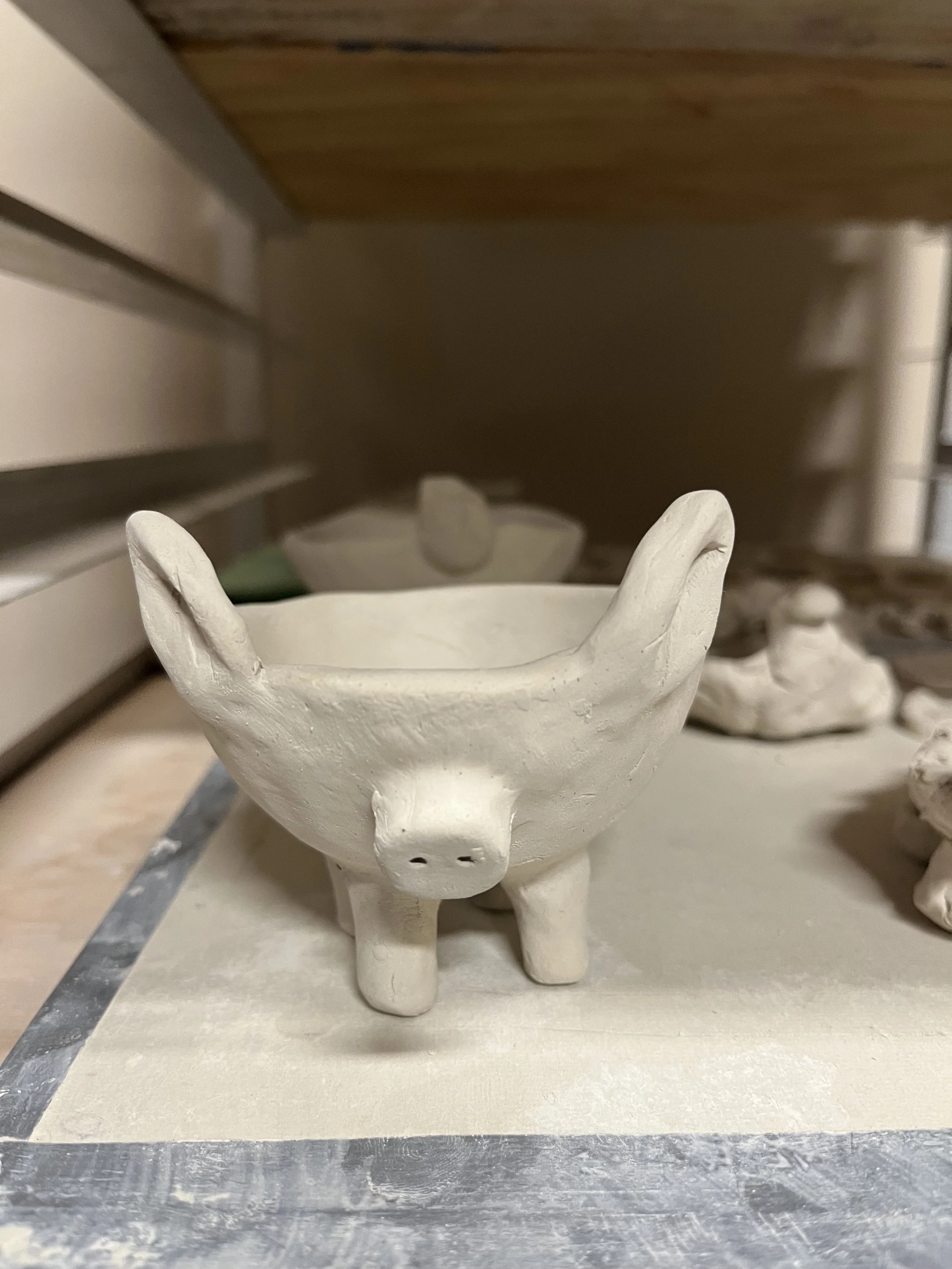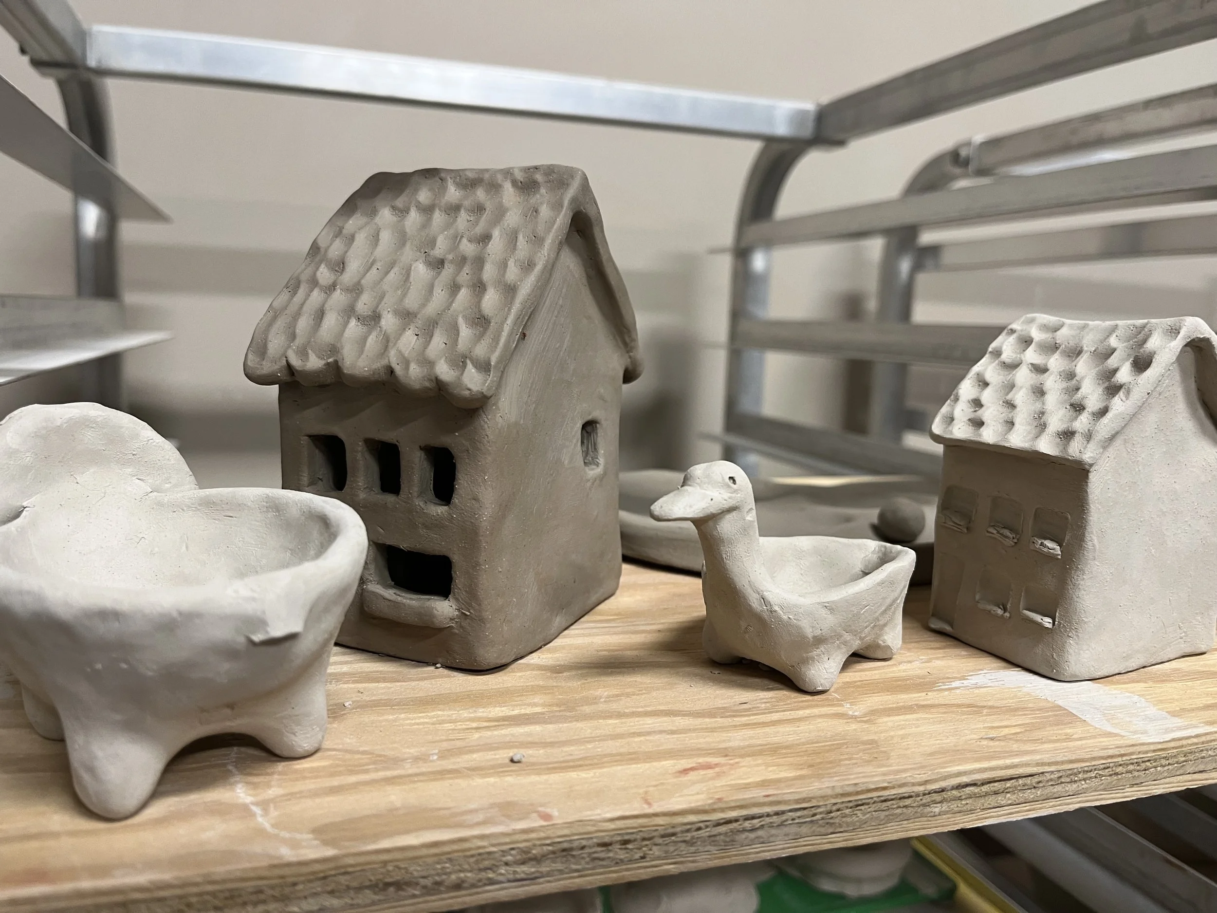 Pieces completed by participants will take one week to dry. They will then undergo a bisque firing, which takes two days. A Clay School staff member will glaze all the pieces and put them in a final glaze firing, which takes another two days.